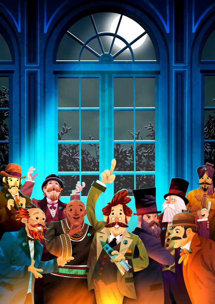 At a meeting of the Astronomic Club, Professor Barbenfouillis, proposes an expedition to the moon by building a space capsule in the shape of a bullet, and a huge cannon to shoot it into space.After some initial protest, the other Astronomers agree to the plan.