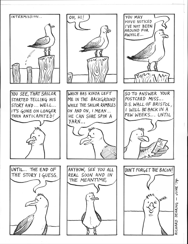 Presented for the first time since it made it’s debut on Facebook in 2014, Sailor and the Seagull my first foray into illustration, 25 years after my Art A level.